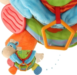 Lijepo obrađena senzorna knjiga nudi djeci mnoštvo veselih životinjskih priča i ima nježno šuškave stranice koje privlače pažnju malih istraživača. Ovaj plišani magarac s kutijom punom zanimljivih interaktivnih elemenata sigurno će privući pozornost svakog djeteta, zahvaljujući nježnim teksturama i intenzivnim bojama.