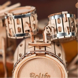 Otkrijte čar slaganja seta ROLIFE brenda ROBOTIME. Ove 3D drvene puzzle bubnjarskog seta uključuju 246 precizno obrađenih dijelova od 2 mm lipove šperploče. Pojedine dijelove lako ćete istisnuti iz ploča i postupnim sastavljanjem kreirati detaljan model koji razvija tehničko razmišljanje, maštu i finu motoriku.