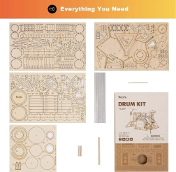 Sastavite stiliziranu minijaturu bubnjarskog seta od 246 precizno izrezanih dijelova i uživajte u pametnoj zabavi za stariju djecu i odrasle. Model od lipove šperploče je precizan, izrađen od kvalitetnih materijala i nakon dovršetka postaje impresivna dekoracija. Dijelovi rezani laserom, sigurni i netoksični materijali te srednja razina težine oduševit će svakog ljubitelja DIY projekata.