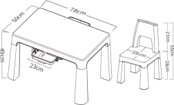 Plastični stolić sa stolicama Neo nudi izdržljivu plastiku i moderan izgled koji se uklapa u svaki dječji interijer. Opremljen je dvjema praktičnim ladicama dimenzija 23 x 14 cm, u koje djeca mogu odložiti sitnice.
