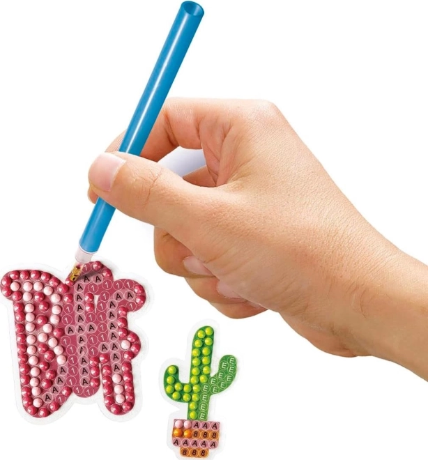 Postupak: Odaberite naljepnicu s ljepljivom površinom, istresite dijamante u posudicu, u vrh olovke uzmite vosak i kamenčiće nanosíte prema legendi ili po vlastitom izboru.
