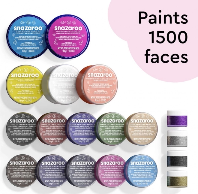 Profesionalni set za oslikavanje lica i tijela SNAZAROO s bogatom opremom za škole, radionice i velike događaje. Nudi dugotrajne, jarke i intenzivne boje koje su sigurne i netoksične, prikladne i za osjetljivu kožu. Lako se ispruju vodom i sapunom i dostatne su za najmanje 1500 lica.