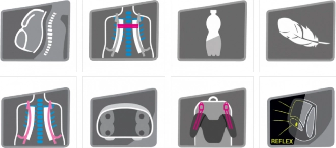 Ruksak teži samo 970 g i dizajniran je za maksimalnu udobnost zahvaljujući laganoj konstrukciji i prozračnom podstavljanju.