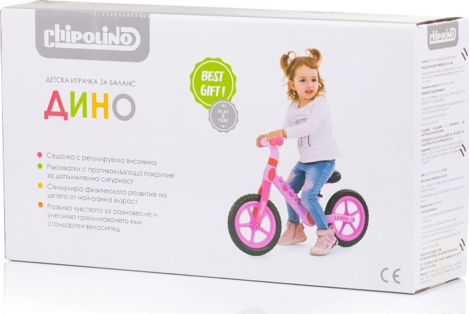 Guralica Dino brenda Chipolino odličan je prvi korak prema vožnji bicikla. Zahvaljujući laganom okviru i jednostavnom upravljanju, djeca od 1,5 godine uče održavati ravnotežu i lako prelaze na klasičan bicikl bez pomoćnih kotača.