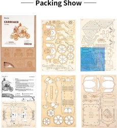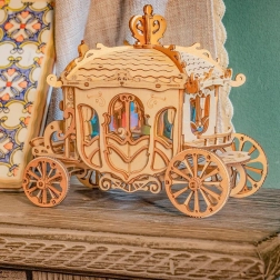 Sastavite bajkovitu dekoraciju od prirodnog drva. 3D puzzle ROLIFE nude 92 precizno laserski izrezana dijela od lipove šperploče koji se spajaju bez ljepila. Model klasične kočije ističe se finim ugraviranim detaljima, razvija finu motoriku, tehničko razmišljanje i nakon dovršetka postaje stilskom dekoracijom i originalnim poklonom.