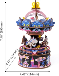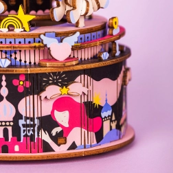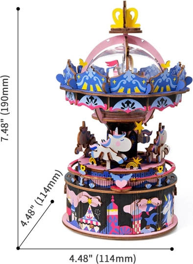 Robotime 3D puzzle Veseli vrtuljak je jedinstveni model vrtuljka, koji će razveseliti svakog ljubitelja glazbenih kutija. Sastavite i uživajte u poznatoj melodiji uz pokretne detalje.