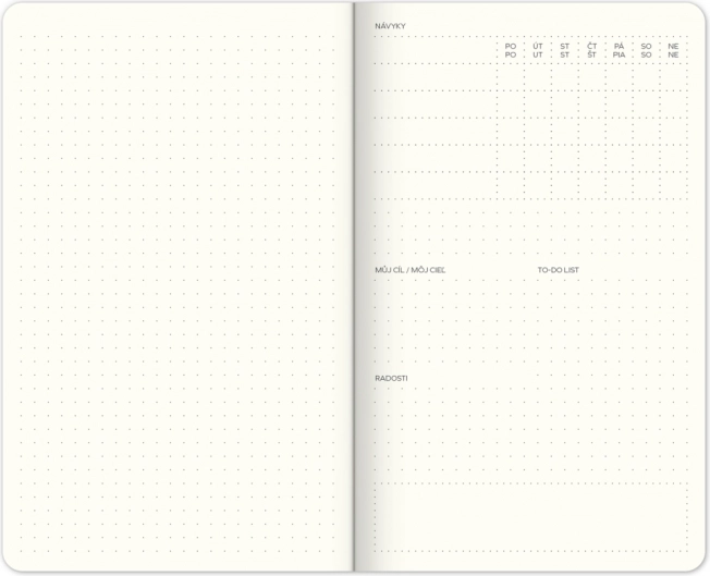 Zahvaljujući nedatiranom rasporedu započet ćete bilo kada tijekom godine i povezati praćenje navika, to‑do popise i ciljeve u jednoj praktičnoj bilježnici. Kompaktan format 13 × 21 cm stane u torbicu ili ruksak i idealan je za putovanja, školu ili posao.