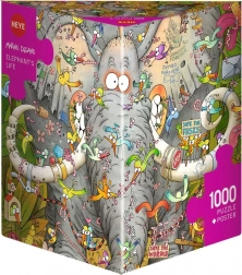 Otkrijte zabavu za cijelu obitelj s puzzlama Heye Slonovski život od 1000 dijelova. Ilustracija karikaturista Marina Degana oduševit će detaljnim humorom i živim bojama, a priloženi praktični plakat služi kao predložak. Pakiranje u netipičnoj trokutastoj kutiji ujedno je sjajan poklon i kolekcionarski komad. Dimenzija složene slike je oko 50 × 70 cm i nudi ugodnu izazovnost, kvalitetnu izradu i dugotrajnu zabavu.