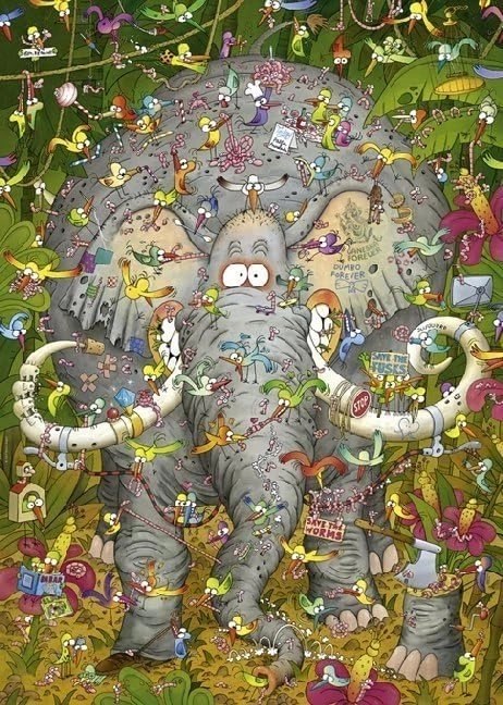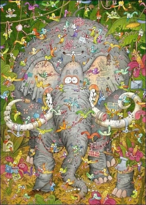 Uživajte u kreativnom opuštanju s puzzlama Heye Slonovski život 1000 dijelova. Popularni autor Marino Degano udahnuo je motivu razigran humor i mnoštvo sitnih detalja koji će vas zabavljati pri svakom novom pogledu. Zahvaljujući priloženom plakatu, slaganje je pregledno i ugodno.