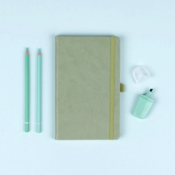 Moderan zeleni izgled s finom teksturom i tvrdi knjiški uvez sa zaobljenim rubovima osiguravaju dug vijek trajanja i ugodno svakodnevno korištenje.