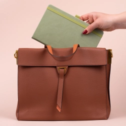 Površina s finom teksturom djeluje elegantno i pogodna je za utiskivanje logotipa, zahvaljujući čemu lako možete izraditi poslovnu notesu. Praktični detalji poput elastične gumice, petlje za olovku i tekstilne oznake olakšavaju organizaciju i rad u pokretu.