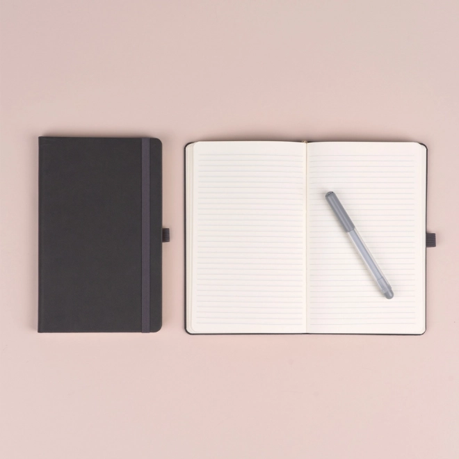 Elastična traka drži bilježnicu sigurno zatvorenom, tekstilna oznaka ubrzava snalaženje, a petlja za olovku osigurava da je pribor za pisanje uvijek pri ruci.