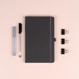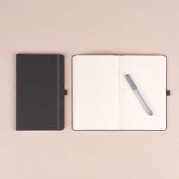 Elastična gumica drži bilježnicu sigurno zatvorenom, tekstilna oznaka označava stranicu, a petlja osigurava olovku točno tamo gdje vam treba.