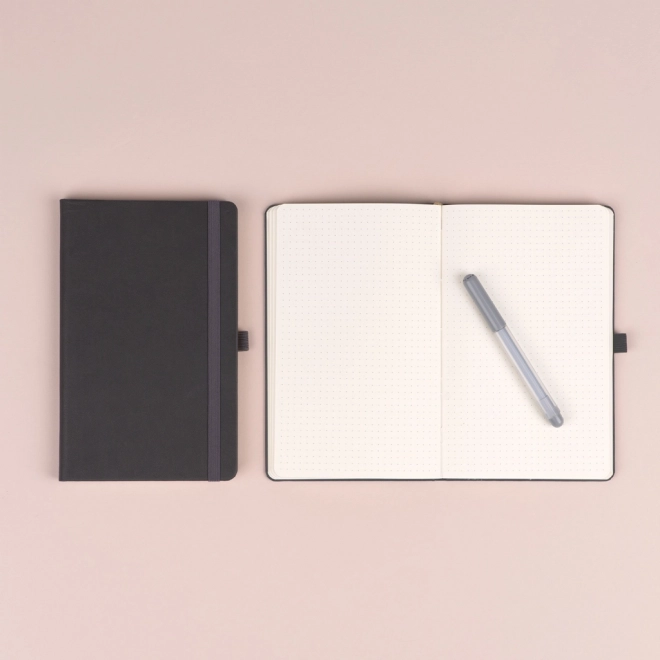Siva točkasta bilježnica NOTIQUE u formatu 13 × 21 cm spaja minimalistički dizajn i pouzdanu funkcionalnost. Zahvaljujući tvrdom knjigoveškom uvezu i zaobljenim kutovima izdržat će svakodnevno nošenje u ruksaku ili torbi. Praktični dodaci – elastična gumica, petlja za olovku i tekstilna oznaka – osiguravaju da vam je sve pri ruci, a bilješke uvijek pod kontrolom.