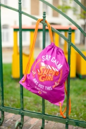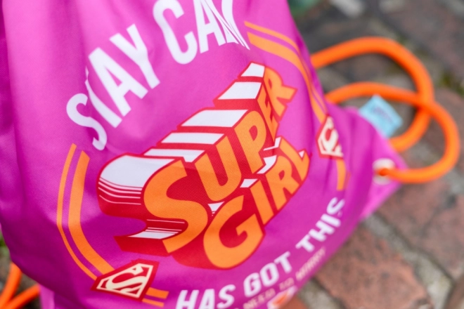 Lagana i praktična vreća s upečatljivim dizajnom „SUPER GIRL” osvojit će i djecu i tinejdžere. Zahvaljujući čvrstim uzicama služi ne samo za zatezanje, već i kao naramenice, pa se vreća lako nosi na leđima. Izdržljiva, periva površina jednostavna je za održavanje i spremna za školu, trening i izlete.