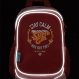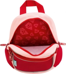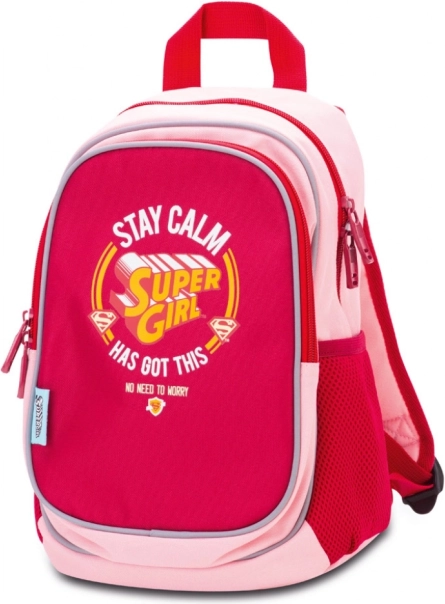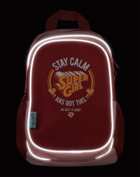 Motiv SUPER GIRL zabavlja djecu, dok bočni mrežasti džepovi drže bocu ili sitnice uvijek pri ruci. Prednji džep na patent služi za brz pristup.