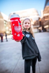 Praktična i lagana boca u crvenoj boji s razigranim srcima razveselit će djecu i roditelje. Zapremnina od 500 ml idealna je za cjelodnevni režim pijenja, dok izdržljiv materijal bez BPA osigurava sigurno svakodnevno korištenje.