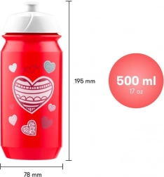 Stilizam dječja boca za piće s motivom srca, zapremine 500 ml, idealna je za školu, igralište i izlete. Izrađena je od meke plastike bez BPA, ispunjava europske norme 2011/10 i sigurna je za djecu. Jednostavno održavanje zahvaljujući mogućnosti pranja u perilici posuđa.