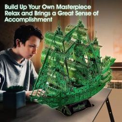 Uživajte u obiteljskoj zabavi s 3D puzzle jedrenjakom Leteći Holandez, koji nakon izlaganja svjetlu svijetli u mraku! Prekrasan model koji će oduševiti svakog ljubitelja pomorskih avantura.