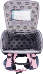 Sustav preklopnog otvaranja omogućuje brz pristup udžbenicima izravno iz klupe. Unutra je prozirni džep s rasporedom i organizator s gumicom za ravnomjernu raspodjelu težine.