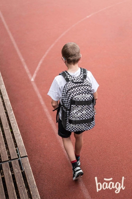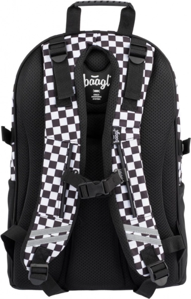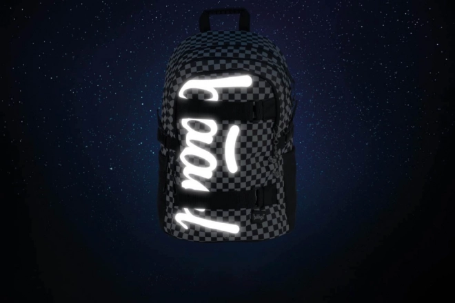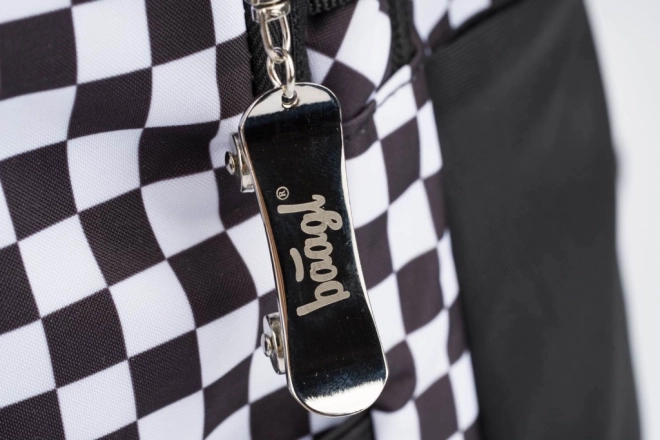 Crno-bijeli šahovski uzorak s reflektivnim elementima za sigurnost i bonus metalnim privjeskom.