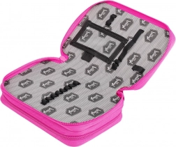Dvokatna školska pernica u ružičastoj izvedbi s logom i ojačanim hrptom za jednostavno rukovanje. Kvalitetne gumice omogućuju pohranu čak i jakih trokutastih bojica. Osim toga, opremljena je malim džepićem za kovanice ili sitnice.