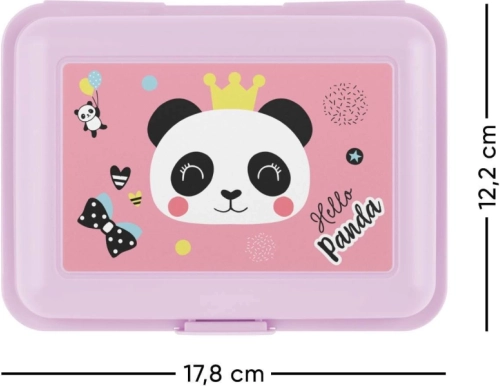Ružičasta kutija za užinu Panda odličan je izbor za svakodnevnu upotrebu. Izrađena od kvalitetne plastike, osigurava izdržljivost i jednostavno održavanje. Na poklopcu se nalazi simpatičan dizajn pande s krunom i natpisom Hello Panda, što će oduševiti svakog ljubitelja životinja.
