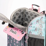 Aktovka, pernica i vrećica usklađene su u razigranom motivu pande. Mekani detalji i kvalitetni patentni zatvarači oduševit će djecu, a izdržljivi materijali roditelje.