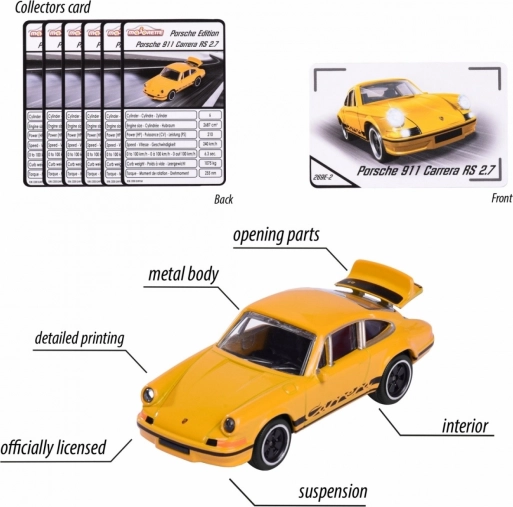 Majorette Porsche Premium Edition 1:64 – licencirani metalni autići, nasumičan odabir modela, kolekcionarska kartica u pakiranju. Odlično za djecu od 3 godine i kolekcionare.