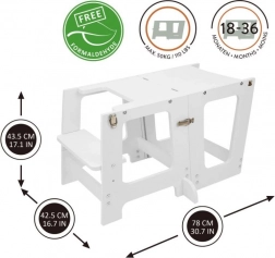 Učeća kula 3u1 bijela nudi svestranost zahvaljujući trima različitim konfiguracijama: kula, stol i stolica. Izrađena od visokokvalitetnog i izdržljivog šperpločevog materijala, lako se sastavlja i ima maksimalnu nosivost do 50 kg.