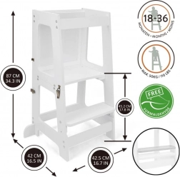 Učeća kula 3u1 bijela je idealni pomoćnik za roditelje koji žele svojoj djeci pružiti sigurno i zabavno okruženje za učenje. Ova svestrana kula prilagođava se potrebama rastućeg djeteta i kombinira funkcionalnost s kvalitetom.