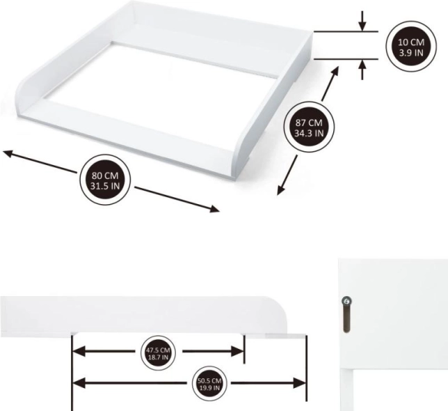 Ovaj stolić za presvlačenje, izrađen od visokokvalitetnog drva, pruža sigurno i stabilno mjesto za presvlačenje vašeg djeteta. Lako se sastavlja, što omogućuje brzo i jednostavno korištenje. Zahvaljujući mogućnosti produljenja prednje ploče, nudi dodatni prostor kada je potrebno.