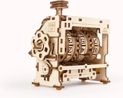 Ovaj elegantni drveni brojač od šperploče omogućuje vam jednostavno bilježenje vježbi, osoba, predmeta ili pojava u rasponu 0–999. Ljubitelje mehanike oduševit će mehanizam s povlačenjem, princip poznat s brzinomjera i projektora, čije porijeklo seže do Herona Aleksandrijskog. Model je certificiran od strane STEM.org kao prikladno nastavno pomagalo, a zahvaljujući aplikaciji UGEARS s podrškom za AR (proširenu stvarnost) njegovo ćete funkcioniranje objasniti interaktivno.