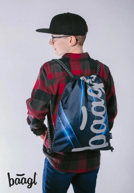 Praktična vrećica na vezice BAAGL za svakodnevno nošenje u školu i za sport. Izrađena od čvrstog, perivog materijala, sa svjetlećim logotipom u mraku i izdržljivim vezicama za udobno nošenje na leđima.