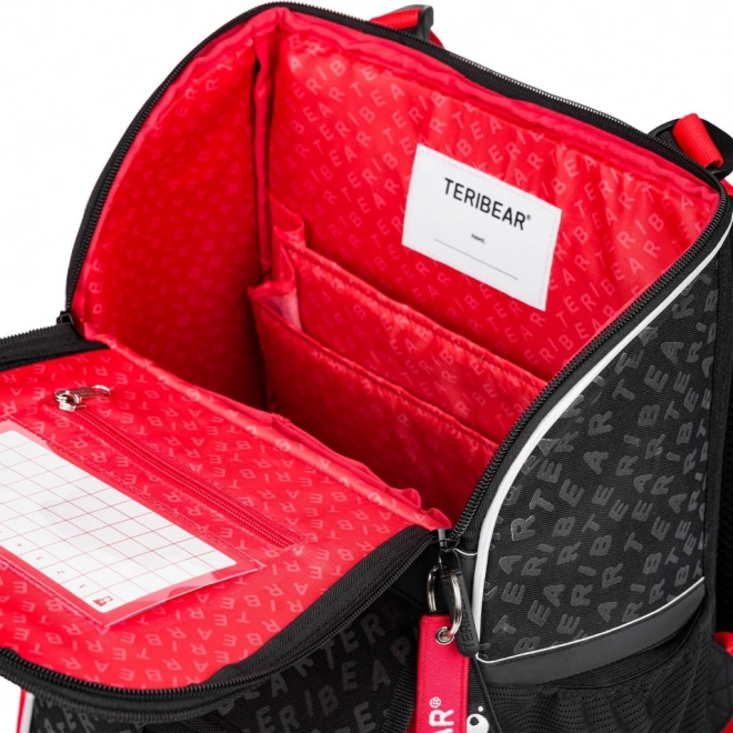 Preklopni sustav otvaranja omogućuje pristup sadržaju aktovke izravno s klupe. Unutarnji organizator s gumicom i džep s rasporedom održavaju školske potrepštine uredno na svom mjestu.