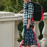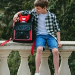 Novi preklopni sustav otvaranja olakšava pristup bilježnicama i udžbenicima izravno s klupe. Unutra se nalazi organizer s gumicom za ravnomjernu raspodjelu težine i prozirni džep s rasporedom. Bočni mrežasti džepovi primaju bocu za piće, a izolirani prednji džep na kopču stvoren je za manji obrok ili sitnice.
