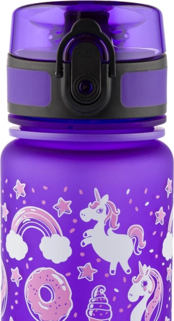 Uživajte u maksimalnom komforu i sigurnosti s ovom bocom za piće. Izrađena od kvalitetnog tritan materijala, bez mirisa i štetnih tvari poput BPA, PVC-a ili ftalata, boca je pogodna čak i za topla pića, zahvaljujući integriranom situ za voćnu limunadu ili čaj. Praktičan zaključavajući čep sprječava curenje, dok ručka omogućuje lako nošenje. Sve to u atraktivnom dizajnu s raznobojnim motivom jednoroga koji će privući svakog školarca.