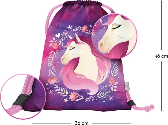 Stiloziran dizajn s motivom konja i cvijeća oduševit će ne samo djecu. Vrećica je idealna za nošenje sitnica.