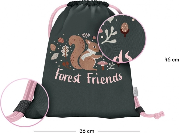 Vrećicu krasi motiv vjeverice i natpis 'Forest Friends', čineći je idealnom za ljubitelje prirode.