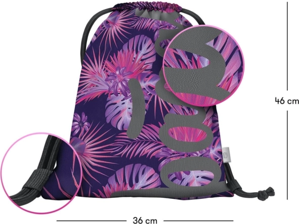 Vrećica je opremljena čvrstim uzicama koje omogućuju lako i udobno nošenje na leđima. Dimenzije 46 cm visine i 36 cm širine nude prostranu unutrašnjost za pohranu vaših potrepština.