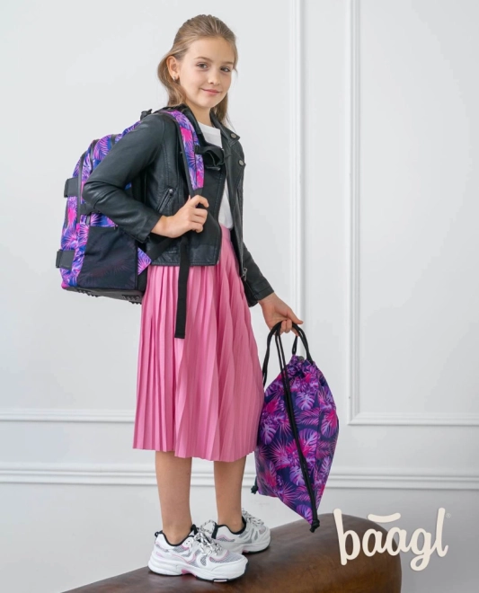 Vrećica ima atraktivan tropski motiv u ružičastim i ljubičastim tonovima koji privlači pažnju.