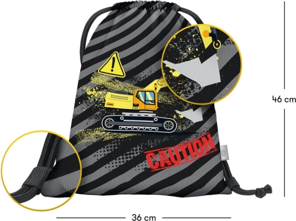 Dječji dizajn s bagerom i upadljivim elementima privlači pažnju i potiče djecu da vrećicu nose svaki dan.
