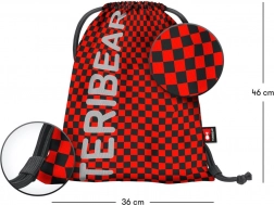 Pernica s preklopnom pregradom, džepom na patent i mjestom za raspored pregledno čuva školski pribor. Vrećica od čvrstog, perivog materijala ima uzice za nošenje na leđima i TERIBEAR logotip koji svijetli u mraku.