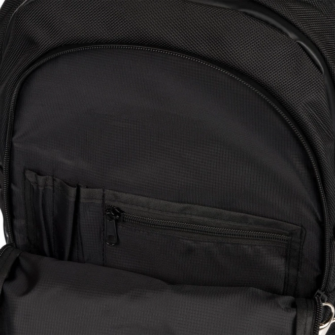 Tri odvojene komore s unutarnjim organizatorom primaju udžbenike, bilježnice i elektroniku. Posebna pregrada sigurno pohranjuje 15" prijenosno računalo ili tablet.
