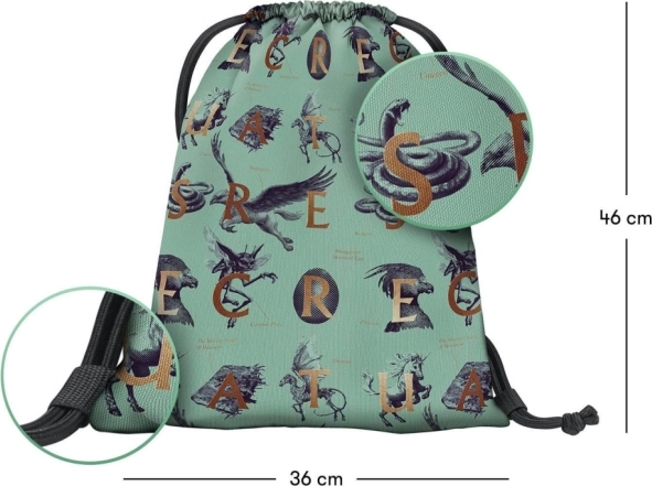 Vrećica za obuću ili sitnice s motivom Harry Potter Fantastične zvijeri idealna je za vaše slobodne aktivnosti. Izrađena je od čvrstog i perivog materijala te se može udobno nositi na leđima.