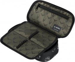 Unutarnji džepovi i elastične trake omogućuju jednostavno organiziranje pisaćih potrepština, dok zelena podstava s motivom krilatih stvorenja dodaje jedinstveni čar.