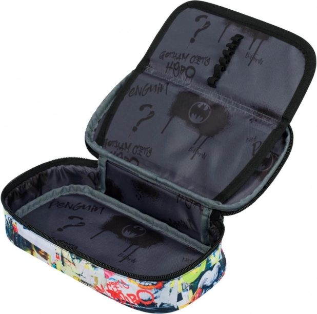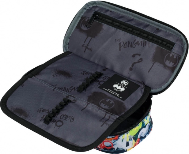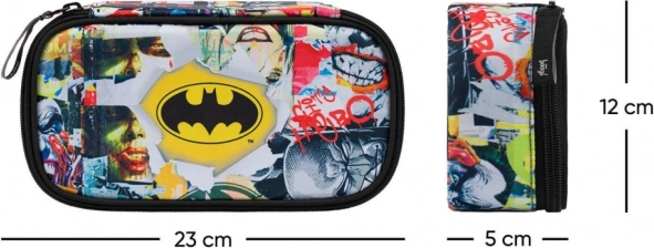 Ovaj školski etui s motivom Batman Komiks donosi originalne stripovske uzorke koji će oduševiti sve fanove superheroja. Opremljen je preklopnom unutarnjom pregradom koja omogućuje laku organizaciju. Također ima unutarnji džep na patentni zatvarač i posebni odjeljak za raspored, što povećava njegovu praktičnu upotrebljivost. Etui je izrađen od tekstilnog materijala, čime mu daje lakoću i izdržljivost.