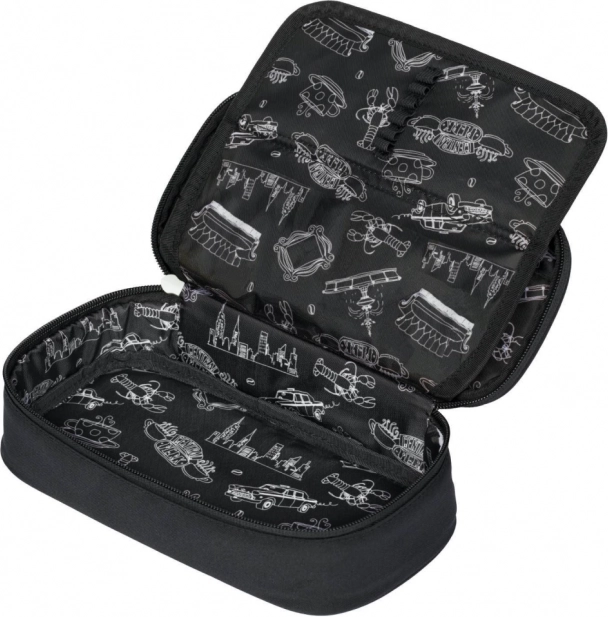 Ova školska pernica u crnoj boji nije samo praktičan, već i stilski dodatak za svakog obožavatelja legendarne serije Friends. S logotipom Central Perk pratit će vas svakog školskog dana. Izrađena od kvalitetnog tekstilnog materijala, pernica nudi dovoljno prostora za sav vaš školski pribor.