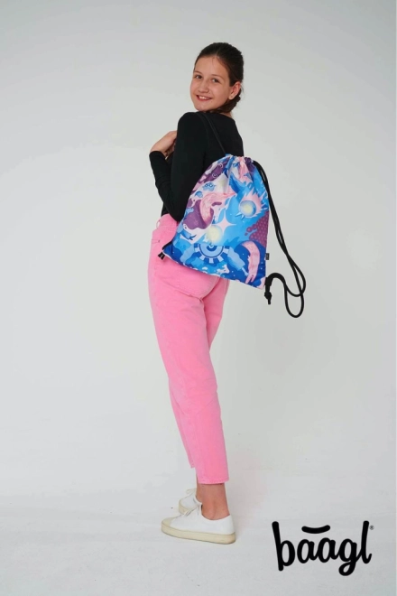 Zahvaljujući zatvaranju pomoću čvrstih uzica vrećicu brzo zatvarate, a ujedno je možete udobno nositi na leđima poput ruksaka. Idealna za školu, aktivnosti, treninge i izlete.