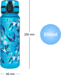 Motiv lastavica i cvijeća daje boci razigran izgled, dok trakica olakšava prenošenje na putu u školu, na trening i izlet. Korištenjem višekratno punjive boce dodatno smanjujete potrošnju jednokratne plastike i podržavate održiv način života.